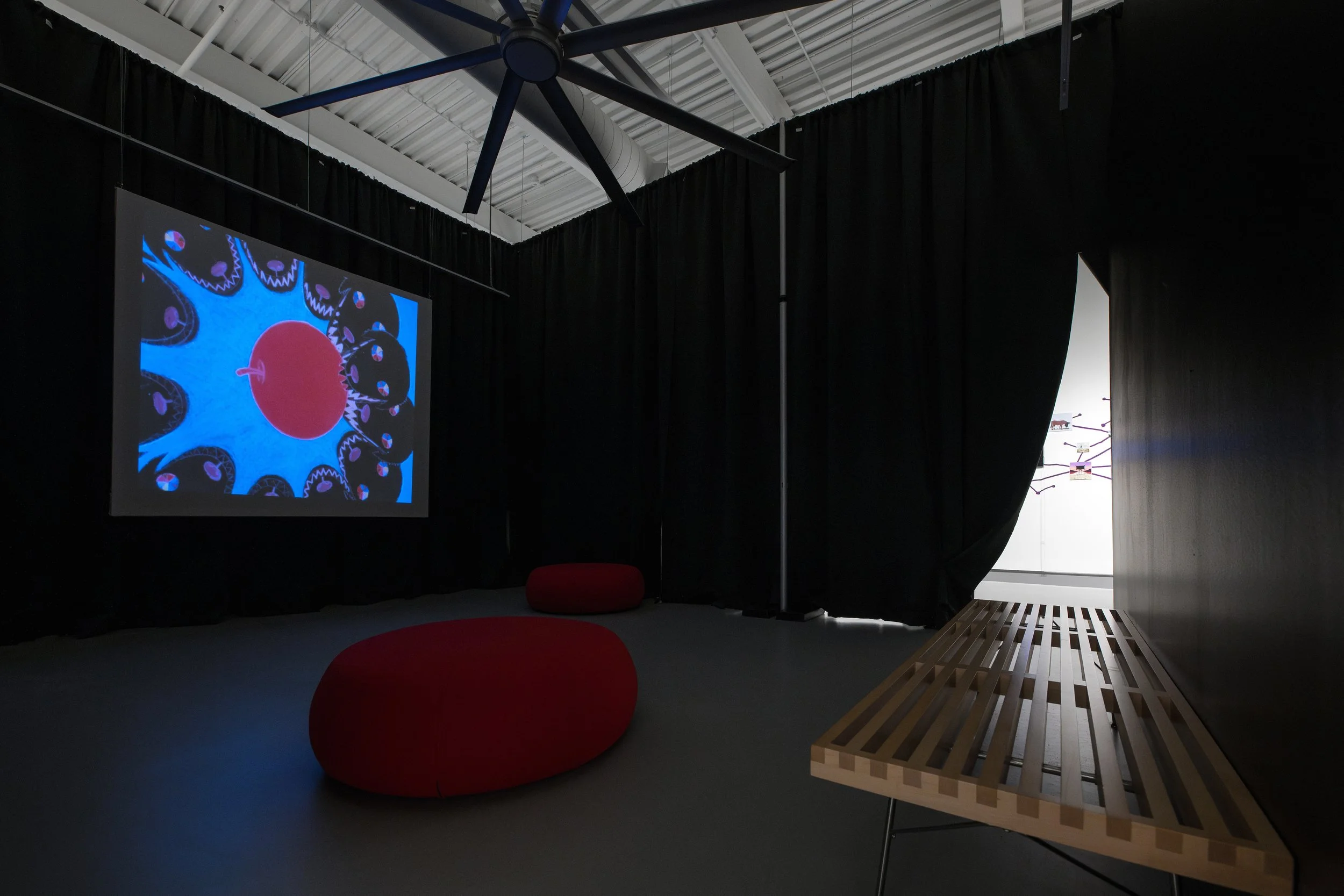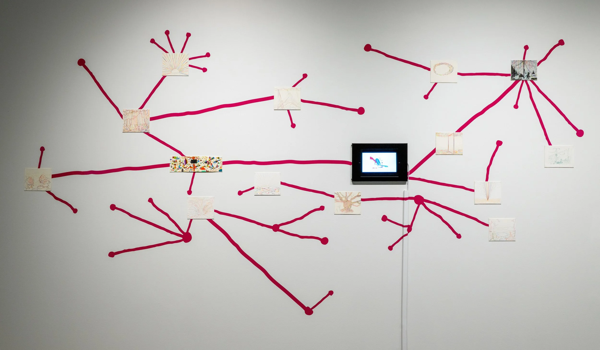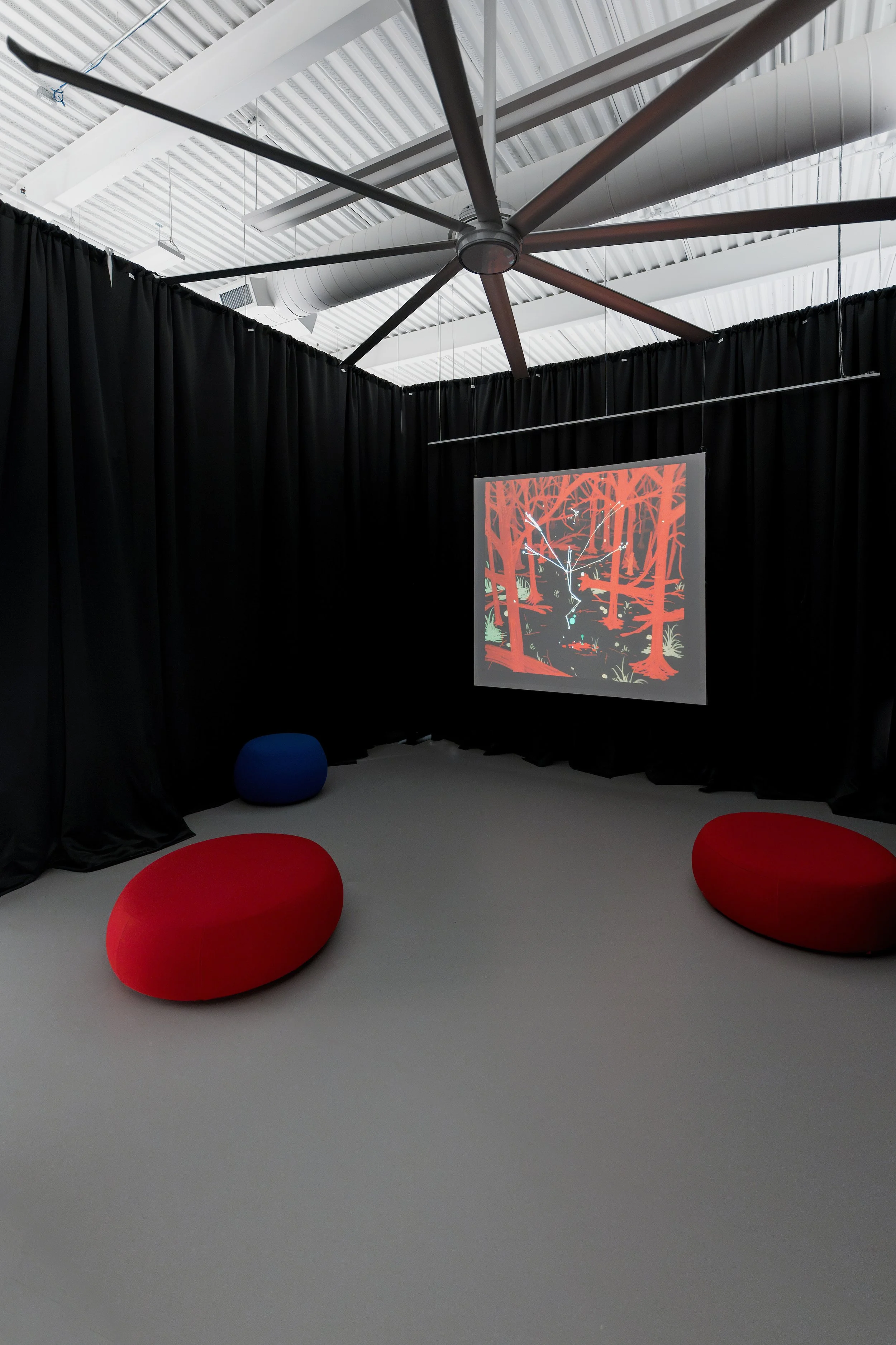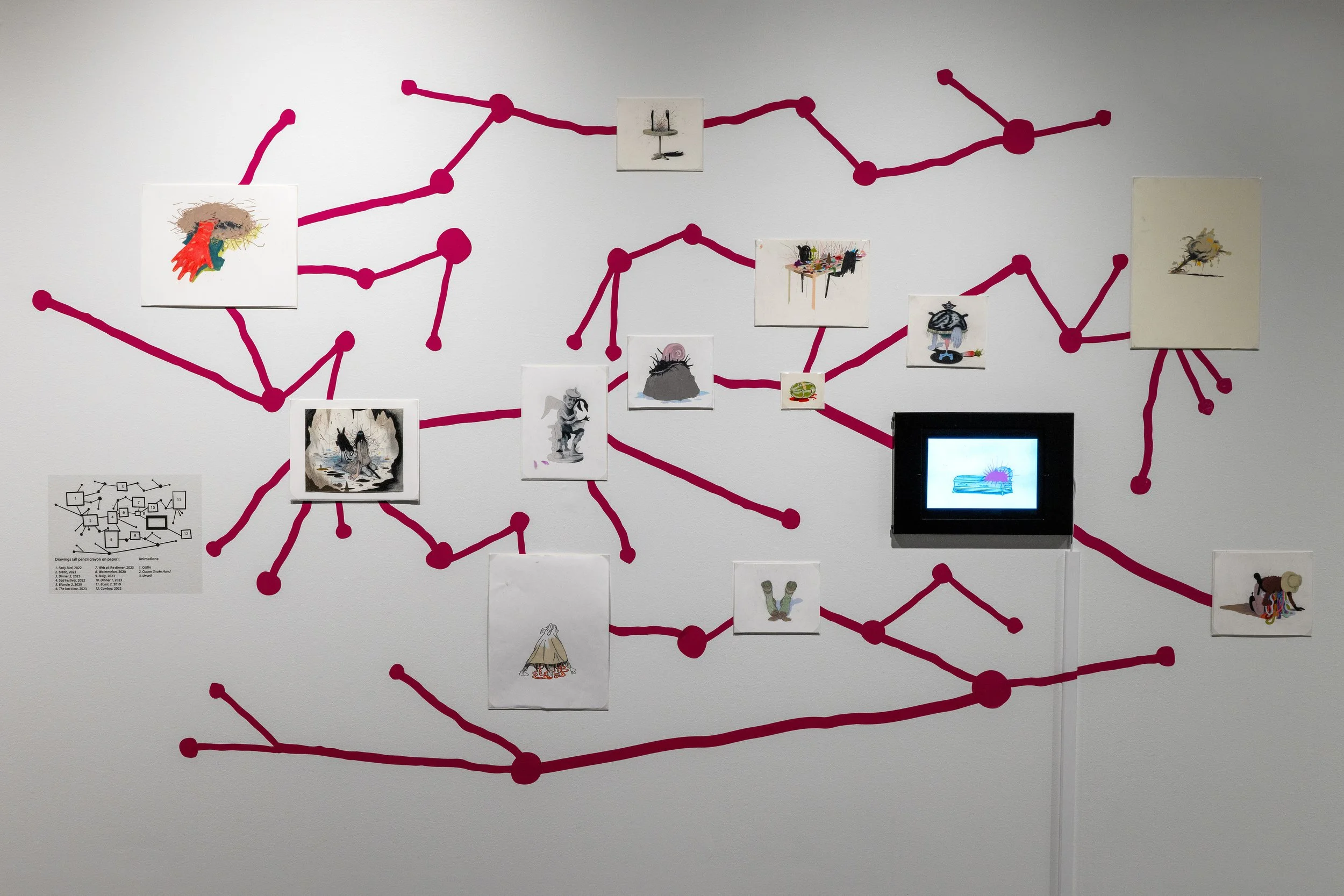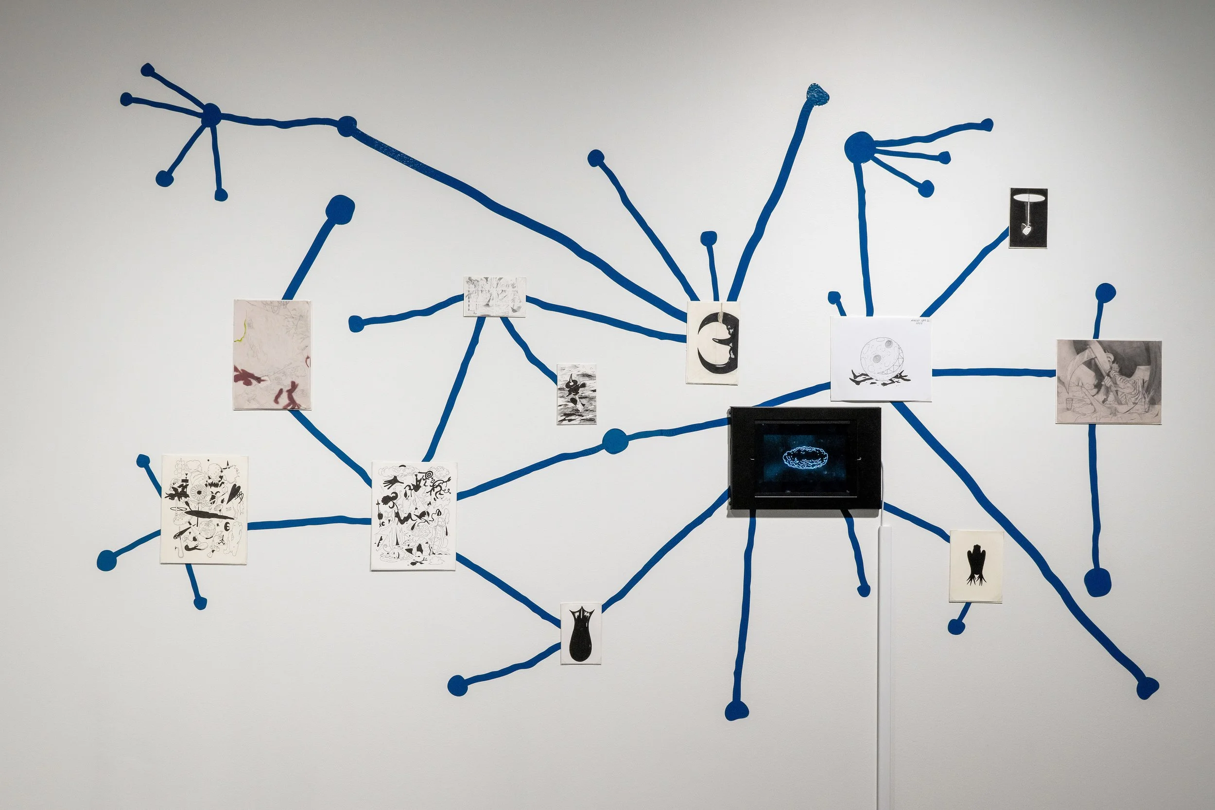 In Night Visions, Montreal-based artist Mathieu Larone presents drawings that transport viewers to familiar spaces made strange. Set alongside collaboratively-made music videos, Larone’s narratives and recurring motifs invite us to take in mysterious stories, while blurring the line between illustrative work and fine art.